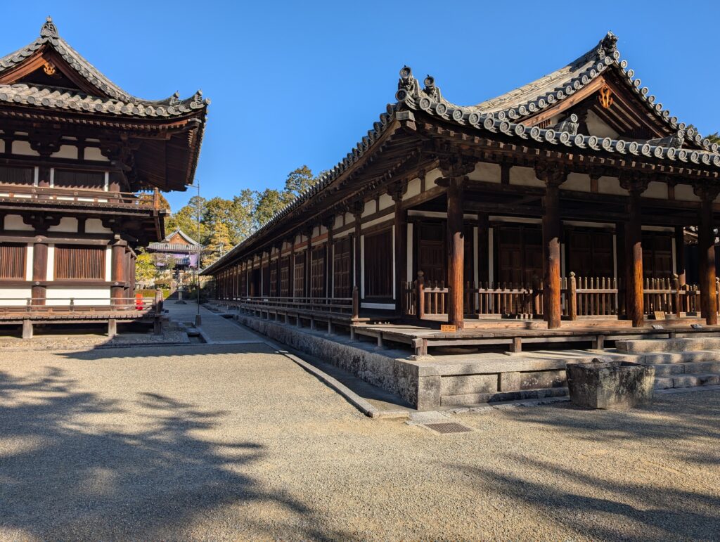 左手にも大きな伽藍が立ち並んでいますが、これらも薬師寺の一部、玄奘三蔵院伽藍。より新しい建物は寺務所や写経道場などとなっています、玄奘三蔵院伽藍も拝観可能ですが、今回はお参りせず。