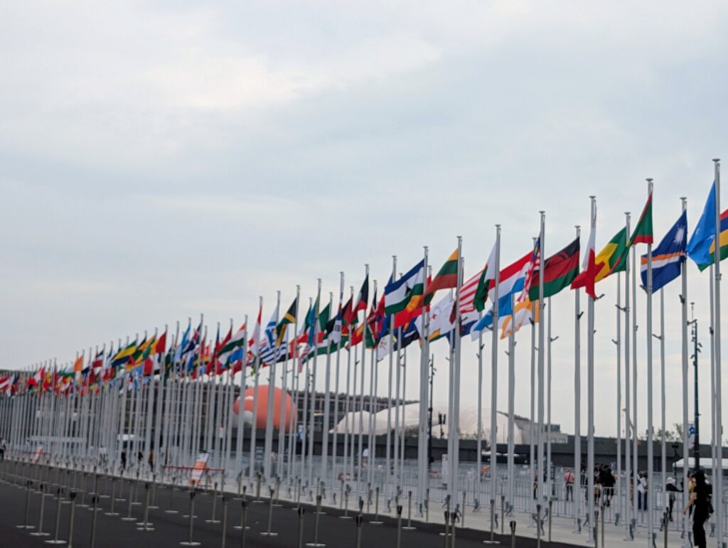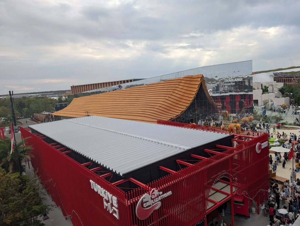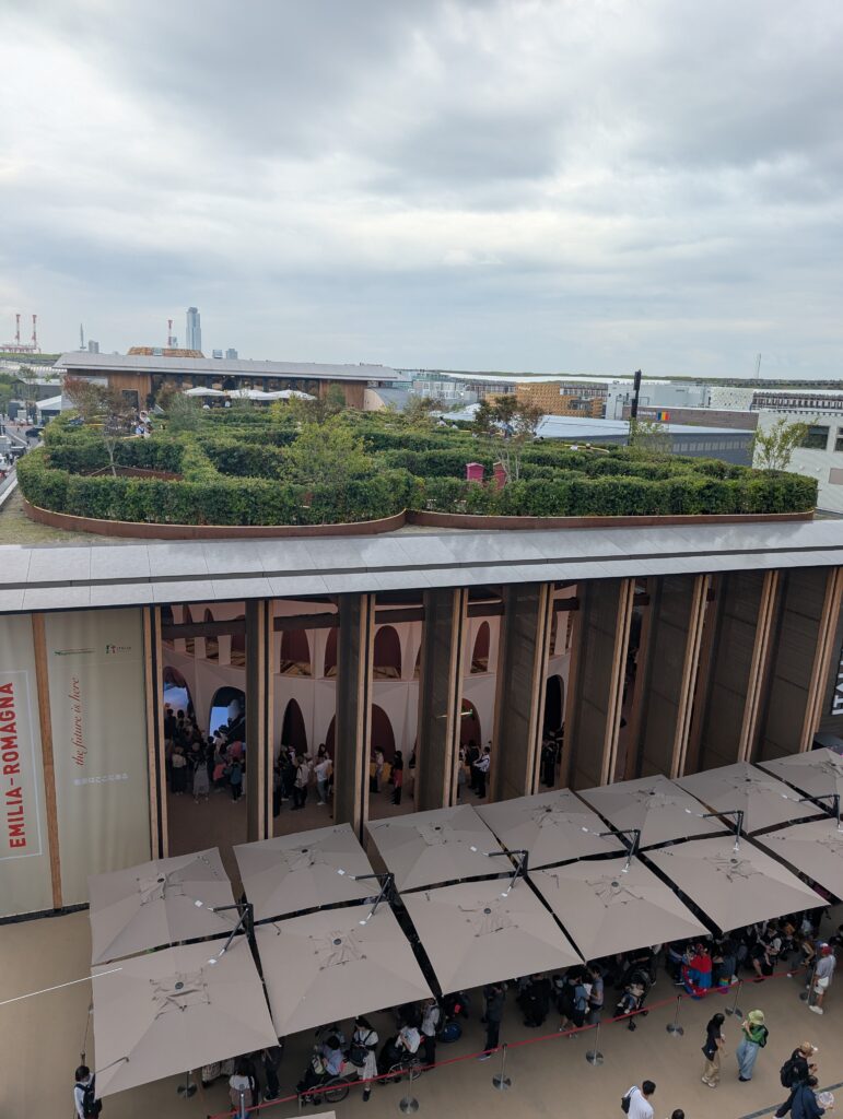 外を歩いていて、気がついたのが、パビリオンの建物のデザイン。大屋根リングに登って半周ほと歩きましたが、各国のパビリオンはそれぞれのお国柄を現しているようで、見るだけで楽しい。