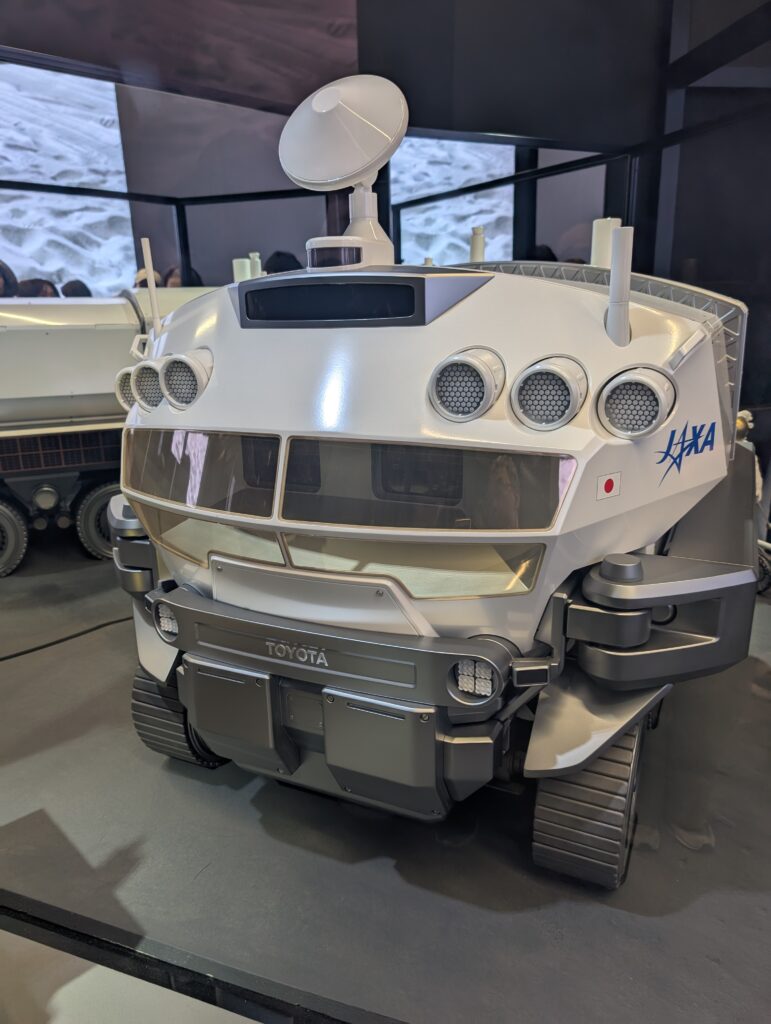 JAXAとトヨタが共同開発する月面車(ルナクルーザー)は、3月にデザインを更新したそうで、展示も更新後のものでした。実際はかなり大きなものになります。