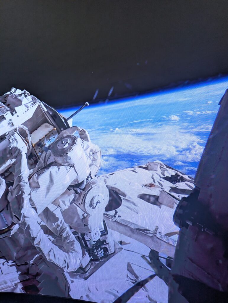 スクリーンはちょうどISSの油井さんと大西さんのメッセージを流しているところで、最後、ISSからの地球を写すと、みなさん写真撮りまくりでした。立ち見で見るだけの映像でも、これは満足でした。宇宙好きだからではあるけど。