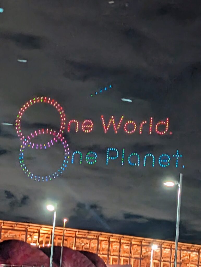 帰り際、バスに乗るために第2ターミナルまで戻り、振り返るとドローンショーが始まっていました。
