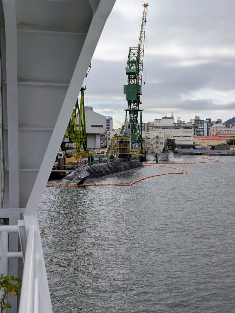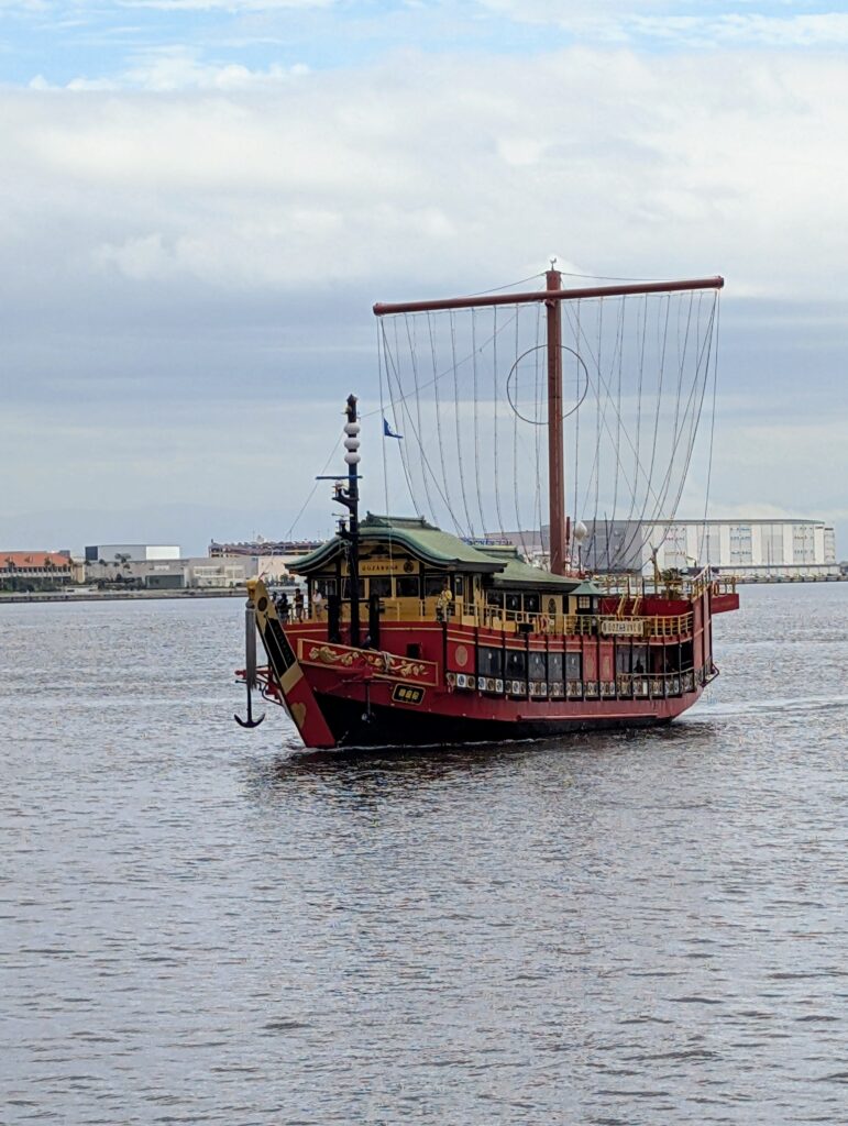 続いて神戸シーバス「boh boh KOBE号」で港を一巡り。神戸港名物(?)の潜水艦が5隻ほど、「みらいへ」もいたし、海王丸や銀河丸も見られて、沖縄発の飛行機がちょうど着陸するタイミングにも遭遇。なかなか見応えありました。