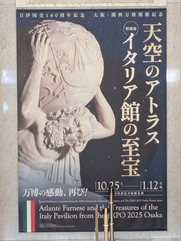 2025年関西万博、イタリア館の目玉展示であった「ファルネーゼのアトラス」他を展示する、大阪市立美術館の特別展です。