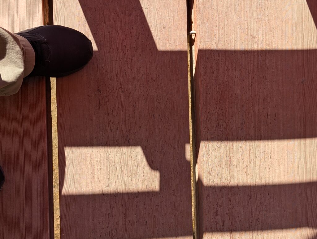 遠浅の海岸にあるということで、床板に隙間をあけ、高潮の時に押し上げてくる海水の圧力を逃がし、逆に床上に上がった海水を流すようにしています。これまた観光協会のWEBによれば、床板は、上に養生板をかぶせて、土足で歩けるようにしている、とのことでした。拡大してみると、板が二重になっているような。下が本来の床板でしょうか。