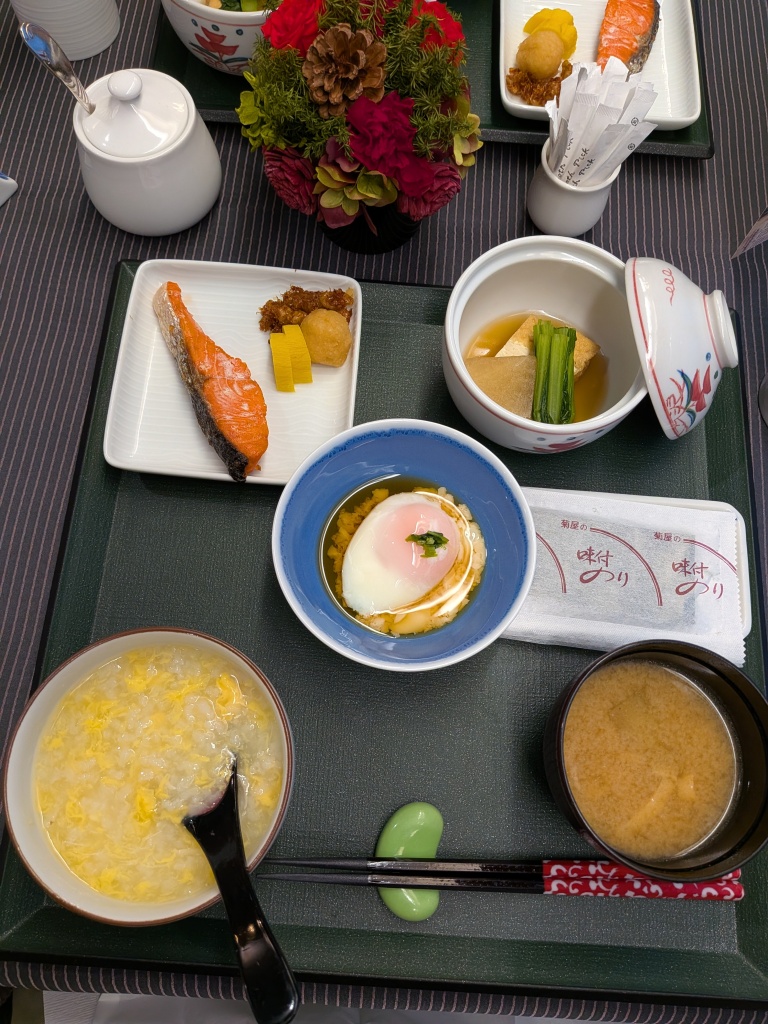 今日もお粥です。味噌汁もあるので、お腹たっぷんたっぷんになりそうですが、問題ありません。