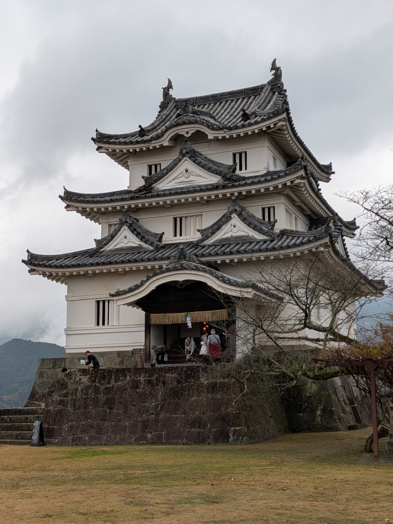 やっとのことで天守まで。本丸跡にぽつんと建つ天守。宇和島伊達家二代宗利の手による、現存12天守の一つ。あまり時間もないので外から眺めるだけ。