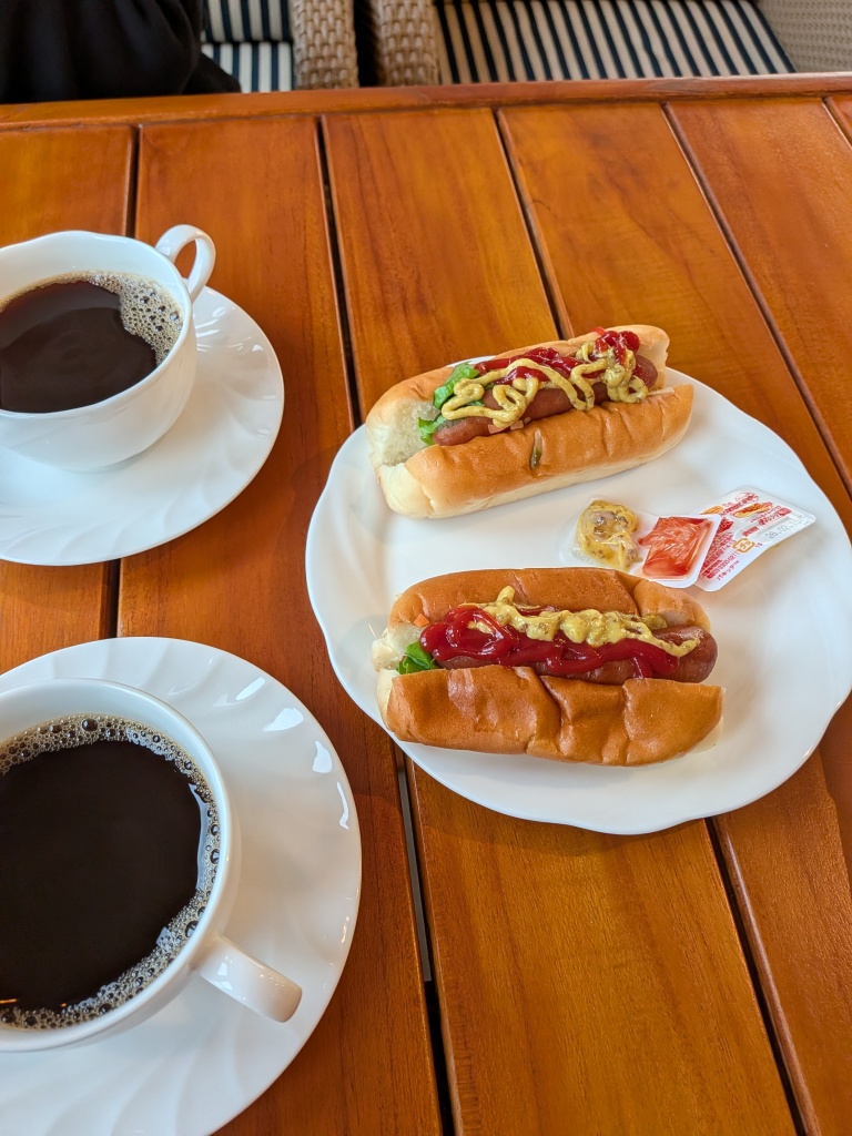 まだ夕食まで時間もあるので、小腹を満たしにリドテラスでホットドッグ。