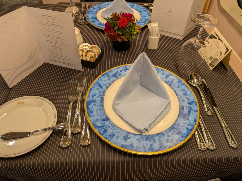 そう、この航海は「クリスマスクルーズ」なのです。クルーズの最終夜の夕食はクリスマスディナーとなります。